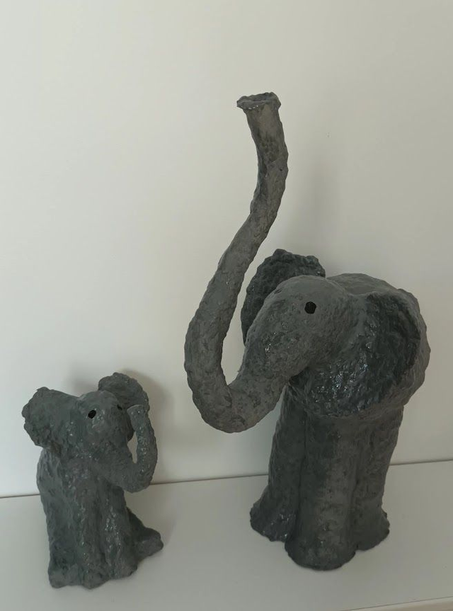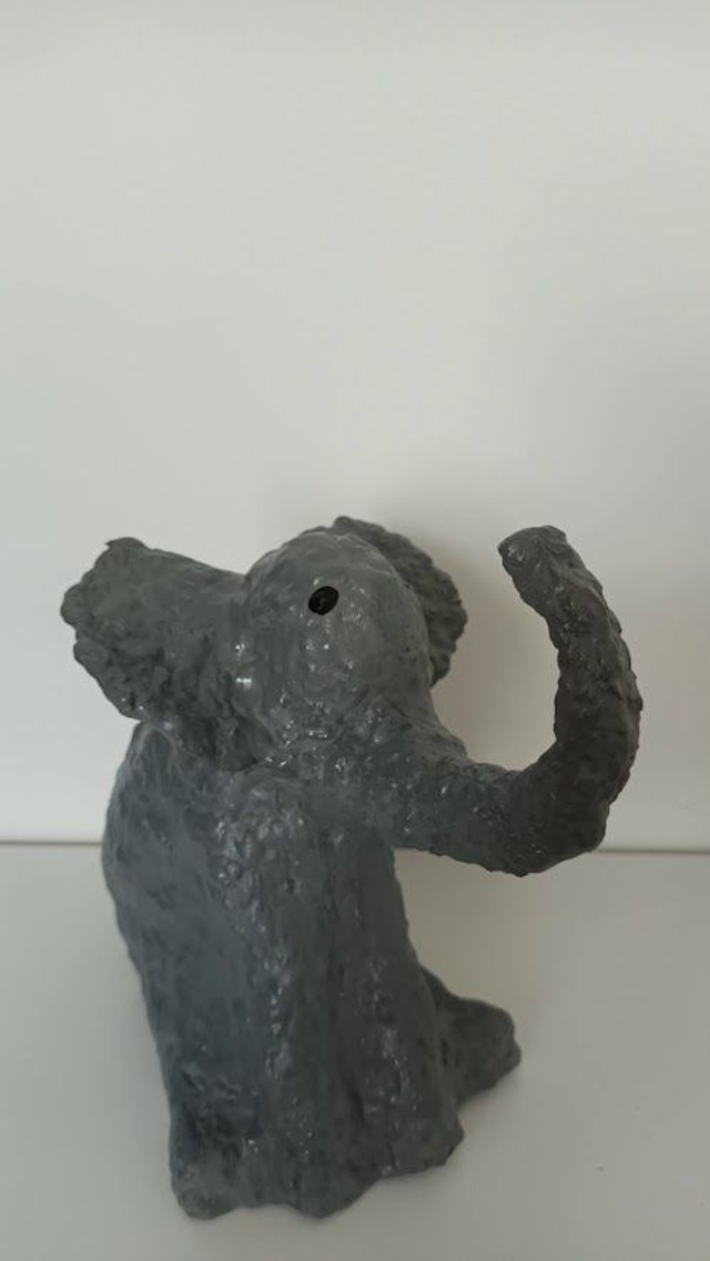 J'ai créé et réalisé cet éléphant gris, en papier mâché. Il est fait pour votre décoration intérieure, ou pour un cadeau pour un de vos proche. Il n'a pas besoin de manger, ni de bouger. Il à juste besoin un petit coup de chiffon humide pour enlever la poussière, si vous voulez (le vernis la protège).