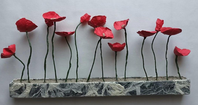 COMPOSITION FLORALE EN LIGNE, fait main, papier mâché, fleurs éternelle, à offrir ou pour sa décoration
