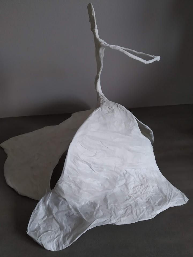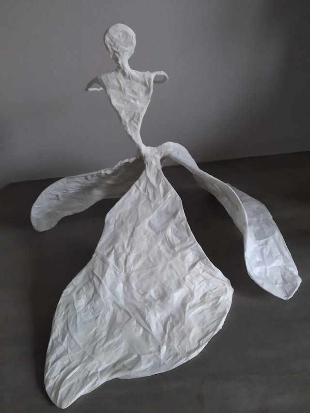 DANSEUSE EN TROBE BLANCHE, fait main en papier mâché et papier de soie, 24 cm de haut,