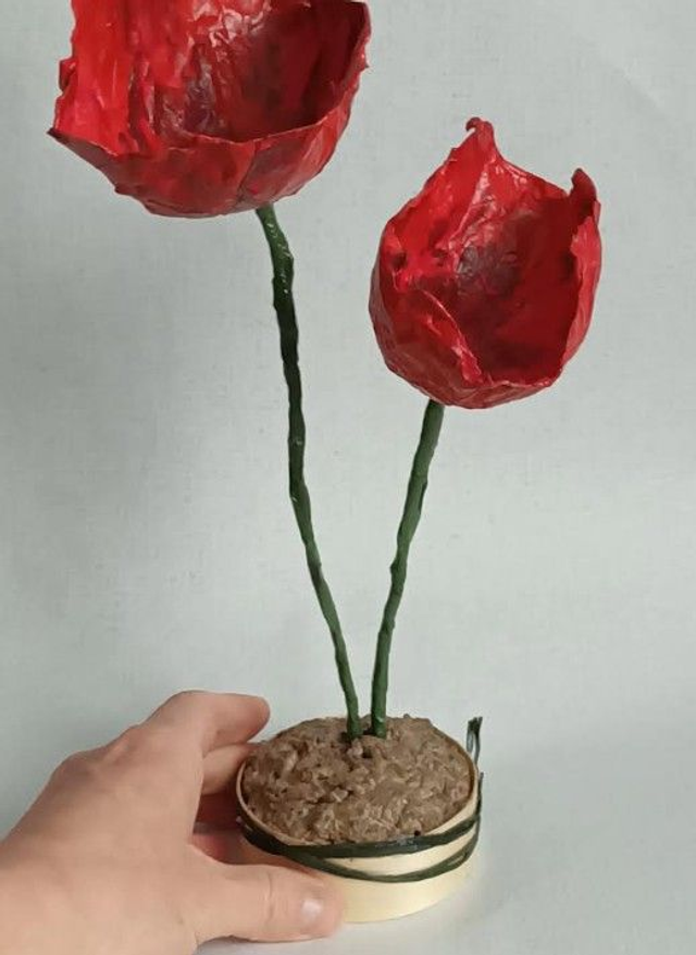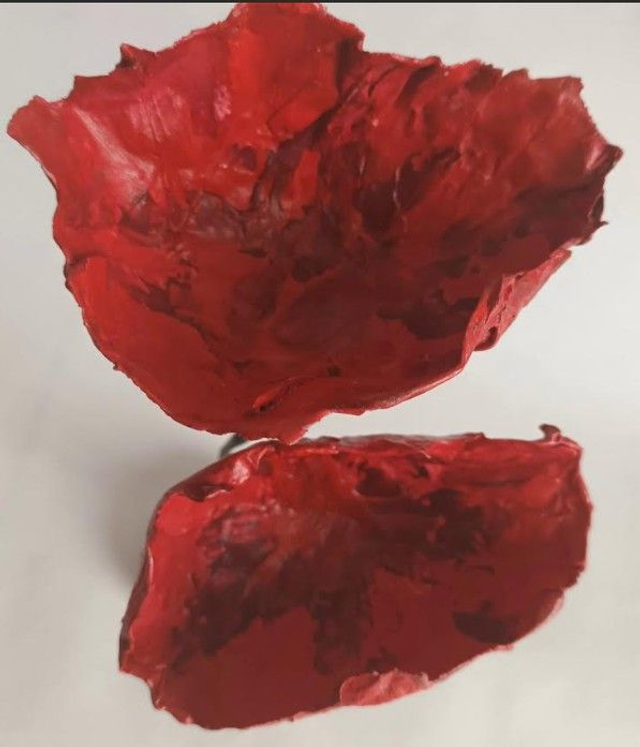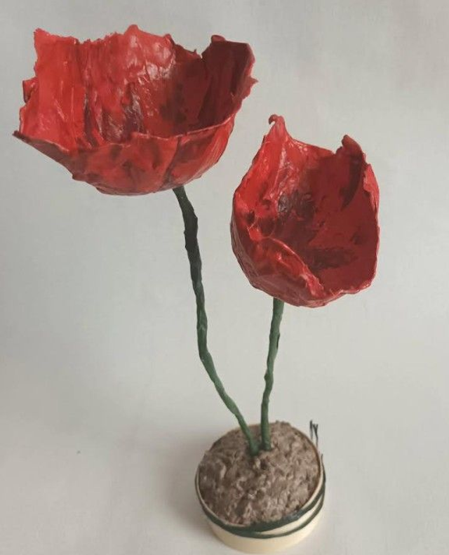 DUO DE FLEURS ROUGES, fait main, papier mâché, fleurs éternelle, à offrir ou pour sa décoration